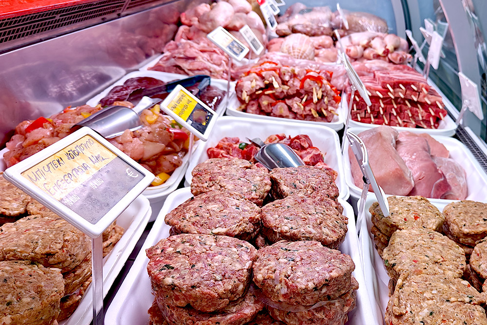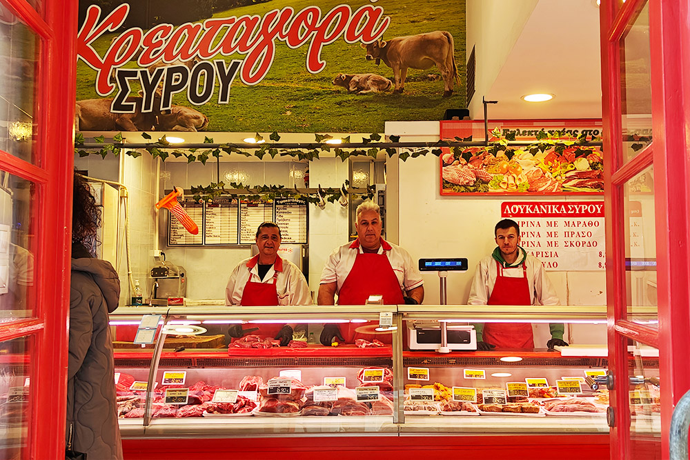 In the Kreatagora Syrou you will find daily a wide variety of meat products made with Greek meat, made with love.